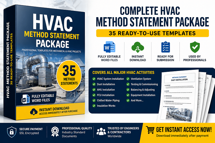 All these method statements are now available for download in one package that can be very much useful for every mechanical/ HVAC / MEP engineer in construction industry.